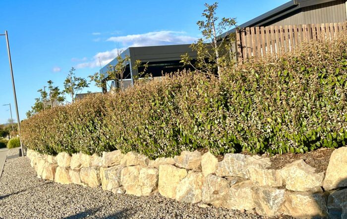 Hardy fast growing upright shrub with large silvery green leaves. Highly scented flowers in autumn/early winter. Great for hedging in sun or shade. Wind, cold & salt tolerant.
